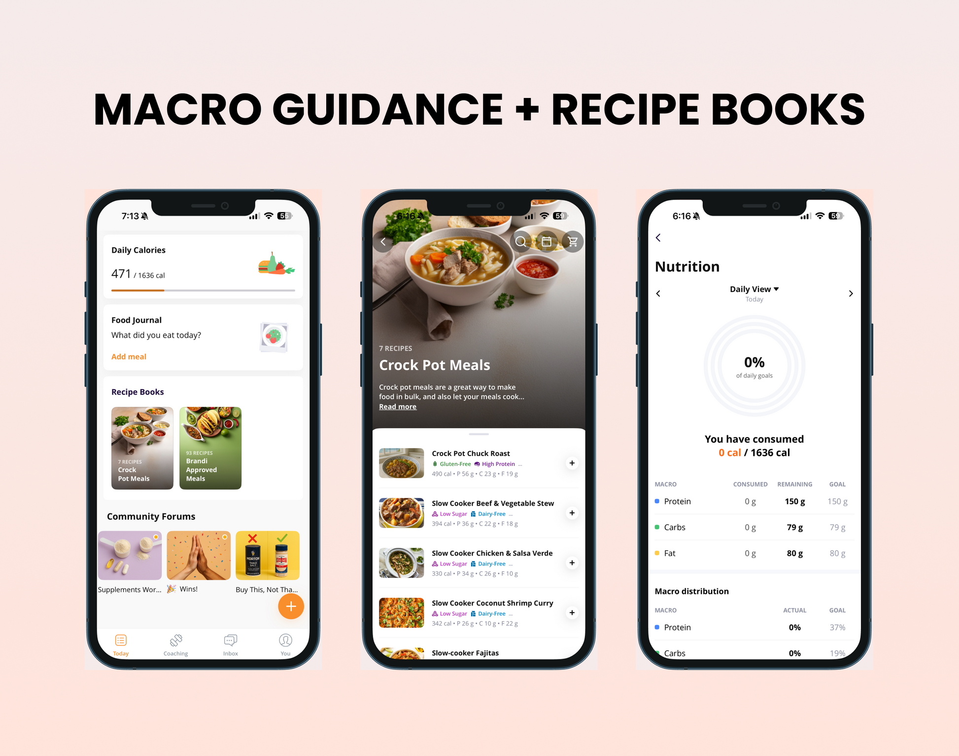 🥩 Nutrition Guidance – Personalized macros + recipe book access so you can build meals that fit your lifestyle.
