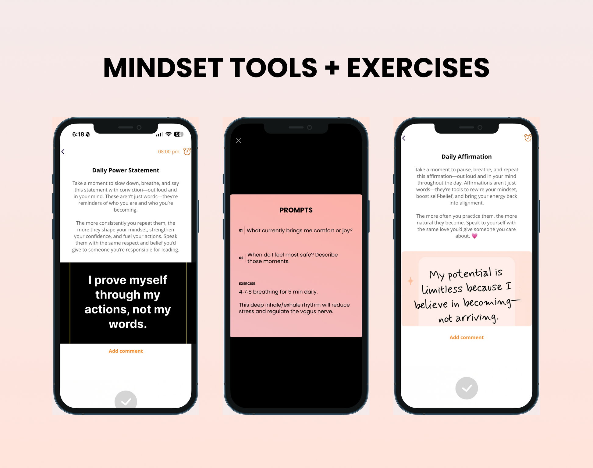 🧠 Mindset Tools – Daily affirmations and weekly mindset from your coach